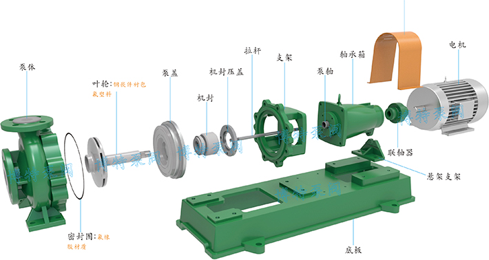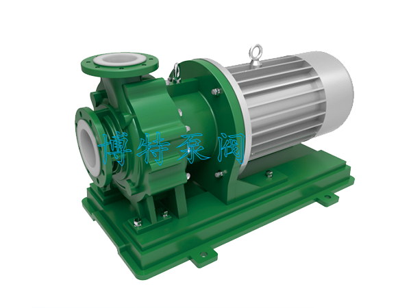 工作原理:氟塑料磁力泵由泵、磁力傳動器、電動機三部分組成。關鍵部件磁力傳動器由外磁轉子、內磁轉子及不導磁的隔離套組成。當電動機帶動外磁轉子旋轉時,磁場能穿透空氣隙和非磁性物質,帶動與葉輪相連的內磁轉子作同步旋轉,實現動力的無接觸傳遞,將動密封轉化為靜密封。由于泵軸、內磁轉子被泵體、隔離套完全封閉,從而徹底解決了“跑......